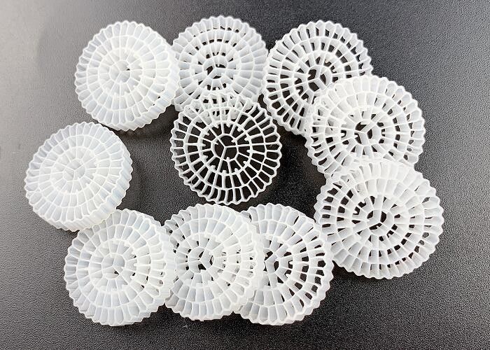 น้ําเสียผ่านสื่อระงับของ MBBR ((สื่อการบรรจุชีวภาพ) ผังปฏิกิริยา, รูปแบบผิวชีวภาพบนพื้นผิวสื่อค่อย ๆ,ด้วยการกระทําของเชื้อไวรัสบนเยื่อชีวภาพ, น้ําเสียจะสะอาด สื่อสามารถเคลื่อนไหวอย่างอิสระในตัวปฏิกิริยากับการผสมน้ํา สําหรับปฏิกิริยาแอโรบิก, การอากาศจะทําให้สื่อเคลื่อนไหว; สําหรับปฏิกิริยาแอโรบิก,การผสมผสานทางกล จะทําให้สื่อเคลื่อนไหว.